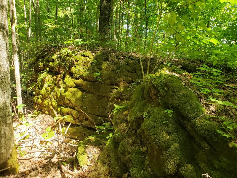 The main Bruce trail winds through forests littered with dolostone boulders, crevices and caves. The stones are often lushly covered with carpets of moss, but where the dolostone rocks are exposed, visitors can find fossils from marine species including corals and stromatolites (large colonies of microbes) from the Ordovician to Silurian periods of geologic history.