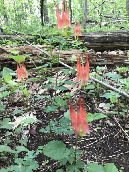 Beamer Memorial Conservation Area lies firmly in the Carolinian forest zone and is composed of rich deciduous and mixed-wood forests. On top of the Escarpment, on level ground before the cliff face, sugar maple dominates the forest canopy, interspersed with red oaks, basswood, ironwood, and black cherry. Common understory trees and shrubs include hawthorns, dogwoods, roses, raspberries and chokecherry, and vines such as grapevine, honeysuckles, Virginia creeper, and poison ivy. Ground-level herbaceous vegetation is diverse, with both native species, such as trout-lily, bloodroot, jack-in-the-pulpit, cleavers, woodland strawberry, and Canada mayflower, and exotic species, such as garlic mustard, Herb Robert, and dandelion. In wetter areas, walnut and hickories prevail in the canopy, and are joined with moisture loving herbaceous species, such as jewelweed and sensitive fern.