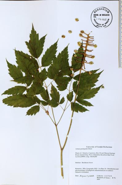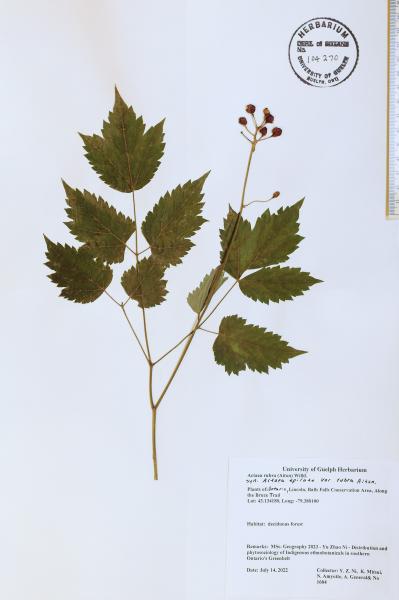 Red baneberry herbarium specimen collected and mounted by Yu Zhao Ni, K. Mitsui, Joy Amyotte, and Alyssa General, July 14 2022