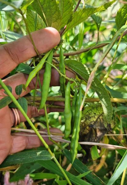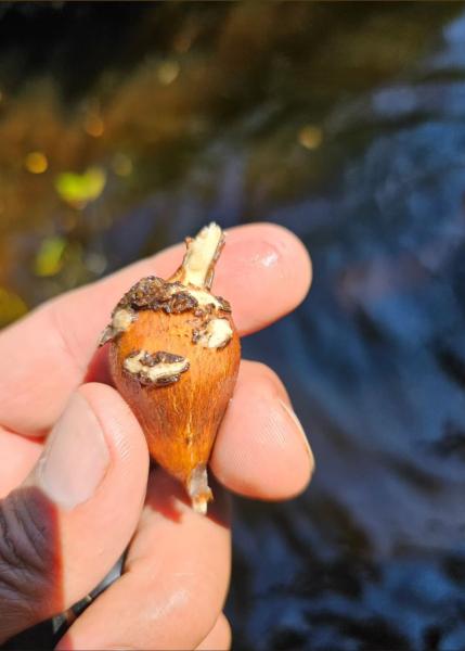 We have included these together, because these two roots can be confused for one-another as food sources. The groundnut or hopniss is an abundant and widely-used tuber food by Haudenosaunee and Anishinaabe, as well as Indigenous peoples throughout its native range, which is from Gaspesie to Florida, and west past the Great Lakes. Hog-peanut is also a food source, albeit much smaller in size and less-often used in food. The Kanyen'kéha names reveal this distinction: the hopniss is like a potato, while the hog-peanut is like a peanut!