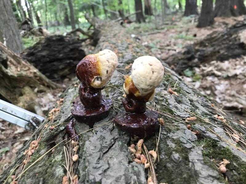 The Carolinean patches consist of deciduous stands dominated by ash and red pine in the canopy, interspersed with black locust and Norway spruce. Strictly a Carolinean species, the black locusts at Boyd are growing at the northernmost edge of their range. The understory is dominated by chokecherry, another Carolinian species, and buckthorn, which is an invasive shrub from Europe. The ground-layer is composed of herbaceous woodland plants such as cleavers, avens and asters, as well as spiked sedge and tree seedlings.
