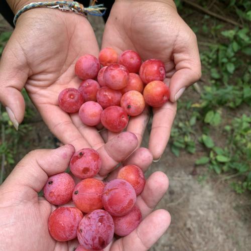 Anishinaabemowinbgesaanmin'gaawanzh, “wild sugar plums”; bagesaanak = plums
