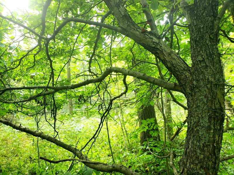 The Red Hill Valley is located in the Carolinian forest zone and is composed of lush deciduous forests dominated by walnuts, as well as cultural forests that reflect the legacies of Indigenous plant relationships throughout millennia, such as the continual presence of edible and medicinal native species, as well as previous European agricultural and silvicultural land use, such as orchards and a small section of white pine plantation. Legacy forests are present at the southern to central end of the valley, indicated by the presence of numerous species of hawthorn trees with a thick raspberry underbrush, red and white pine trees growing in neat rows, and a patch of black ash swamp and cedar swamp at the lower end of the creek. Naturalization has begun to occur in the European agricultural/silvicultural land use areas, with the return of sugar maple, dogwoods, ashes, black walnut, and red oak to these sites.
