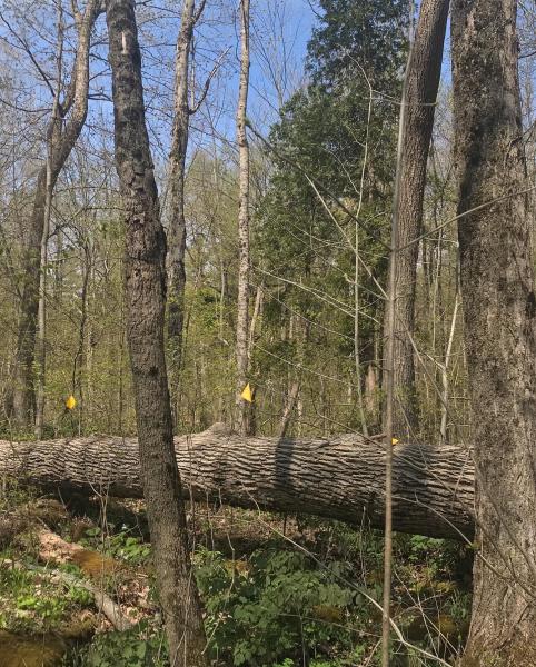Drier, upper slope positions above the Red Hill Creek are home to open woodland, which have a loose cover of shrubs, small walnut, ash and hawthorn trees, and an abundance of asters, goldenrods, fleabanes. The trees thicken as we descend into the Red Hill Creek floodplain, and oaks and sugar maple are replaced by moisture loving species such as bitternut hickory, willows, and Manitoba maple. The understories of these floodplain forests are dominated by large and dense patches of the gregarious garlic mustard, but is nevertheless home to spring ephemerals plants such as trillium, bloodroot, wild ginger, jack-in-the-pulpit, ramps, hepaticas, avens, anemones, as well as sedges, goldenrods, and other woodland herbs.
