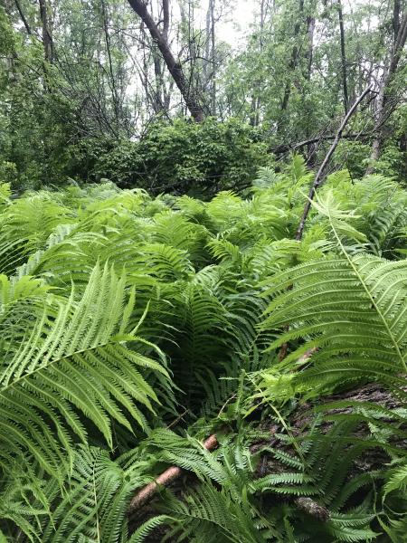 | Ostrich Fern | Matteuccia struthiopteris | kahtehrahòn:tsi | zhishkwedaansan, naanaaganashk (-oon) (general name for ferns), mzise miijim (general term for fern) |