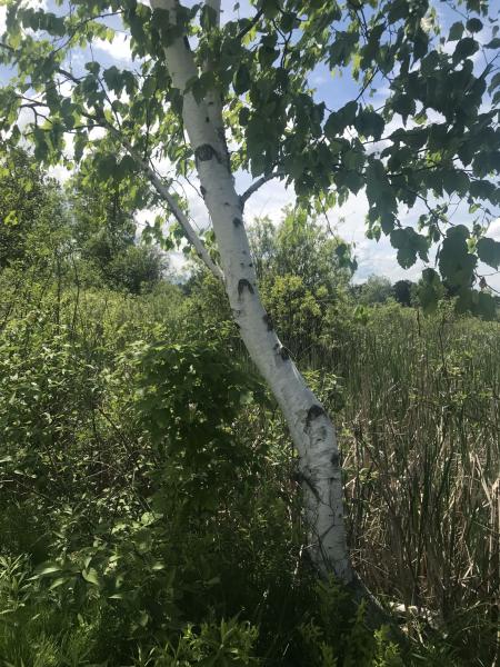 Deciduous swamps and lowland deciduous forests occur further inland. Ash trees once formed the main canopy in these treed communities, but have experienced significant dieback due to the impacts of emerald ash borer. Within the deciduous forest component, Manitoba maple now makes up most of the tree cover, and grows interspersed with sumac, willows, and buckthorn. Understory plants include garlic mustard, hedge bindweed, jewelweed, wood and stinging nettle, bugleweed, water smartweed, asters, and goldenrods. Deciduous swamps and thicket swamps occur on the north side of the marsh. Dominant swamp tree species include Manitoba maple, birches and poplars, and willows.