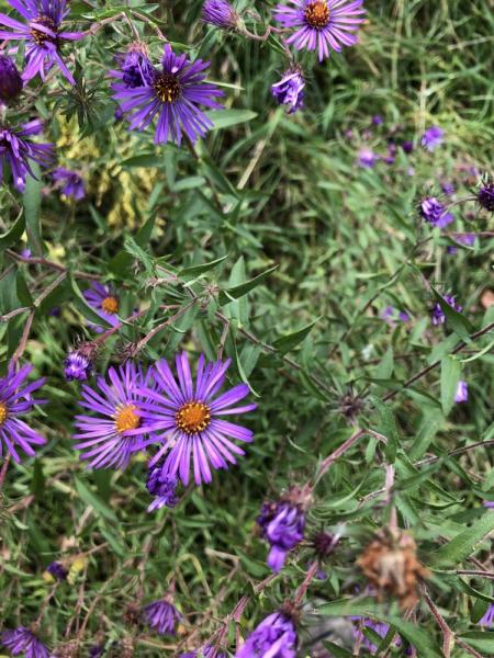 Possibly a Panicle Aster (but possibly New York Aster, or another species), Photo credit: Jocelyn Carter/ Medsin Cup 2023