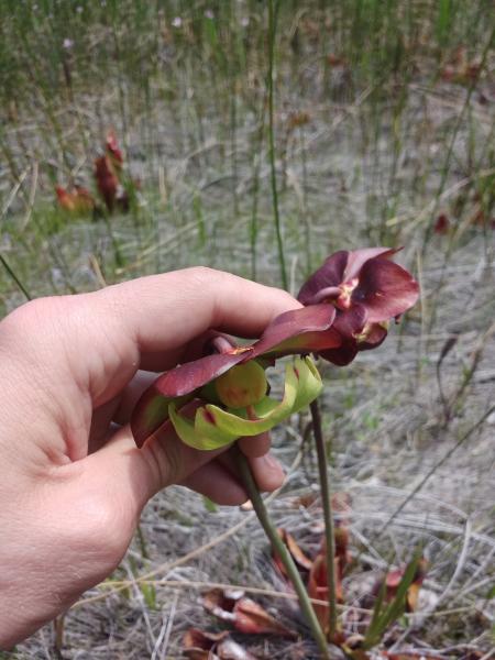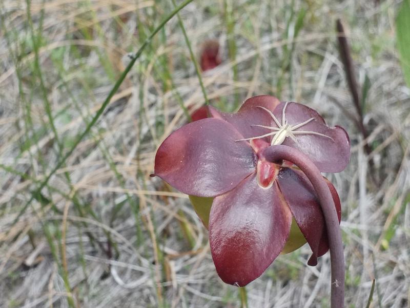Purple Pitcher Plant (Sarracenia purpurea) flower, growing in Tobermory Bog, photo credit D. Botcherby