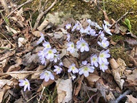 Hepatica acutiloba flowers often bloom in the spring before leaves are revealed, photo credit YZ Ni 2022