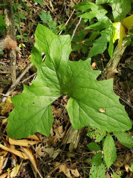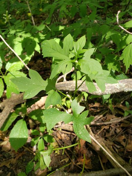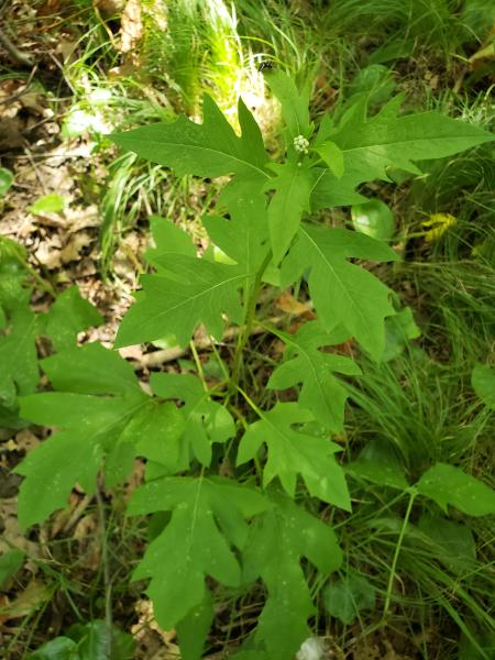 White rattlesnake-root growing at Summit Bog, showing flowerhead of tiny white flowers and leaf morphology and arrangement, photo credit J. Dolan 2022