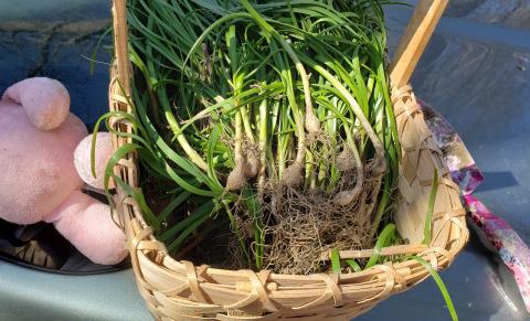 Wild onions are among the first wild edibles that come up in the springtime, and are known as “blood cleaners” for blood that has become “stagnant” during the winter, due to less physical activity and circulation. People collect these springtime foods and make them into soups and other foods throughout Haudenosaunee and Anishinaabe homelands. Eating them is thought to be a nutritious tonic like drinking maple sap and sassafras, for cleaning out the clogging in our bodies that might have built up over winter. Depending upon the weather and the location, they appear in late March or April. Native people often harvest wild onions to make into an early-spring nourishing soup, such as one made with onions, potatoes, green beans, stock and flour or cream to thicken it, and eat it with scones or pan bread. You can use them in dishes in place of scallions or garlic. Chief John Arthur Gibson described wild onions and garlic to F. W. Waugh at Six Nations of the Grand River in 1912 as being used for pink dye. He also described the bulbs and leaves of wild onions and leeks as being cooked with butter and salt and eaten like a vegetable, and also being used to make soups.
