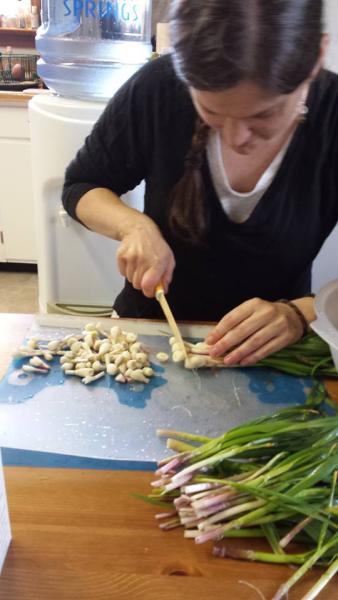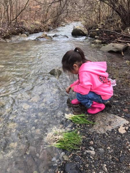 Hickory Edwards of the Turtle Clan from Onondaga Nation was the first person to teach Dr. Dolan how to harvest and cook wild onions. His father Rick Edwards had taught him where they grow in the forest understory and in sunny floodplain areas along Onondaga Creek (and other rivers and creeks). In early spring 2014, Hickory Edwards and Jessica Dolan kayaked down Onondaga Creek to harvest Wild Onions along the way. During this journey, Hickory taught Dr. Dolan the Haudenosaunee ethics he had learned for harvesting onions, as with other plants. One is not supposed to harvest the first one you see, and it’s important to harvest only a small percentage of the patch – or none at all, if there are only a few.