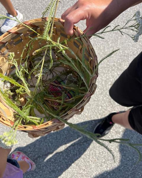 Yarrow collected in a basket for medicine, Photo credit: Jocelyn Carter/ Medsin cup 2023