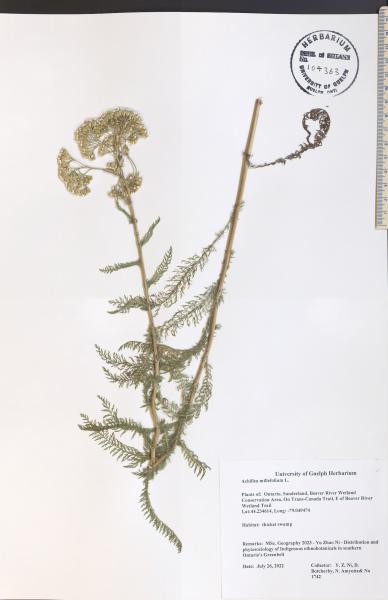 Yarrow herbarium specimen collected and mounted by Y.Z. Ni, D. Botcherby, and J. Amyotte, 2022